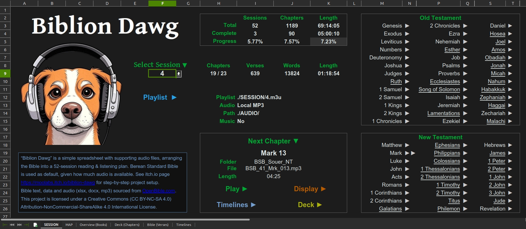 | Tags | audio-bible, audiobible, berean, bible, spreadsheet |