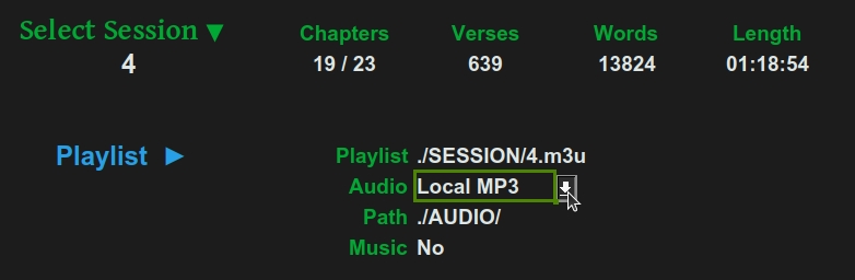 Audio files are available at OpenBible.com, split into book or chapter mp3 files. These can be used as remote files or downloaded locally (see Session Config):