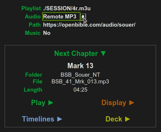 - "Remote MP3" opens OpenBible.com URL in default internet browser.